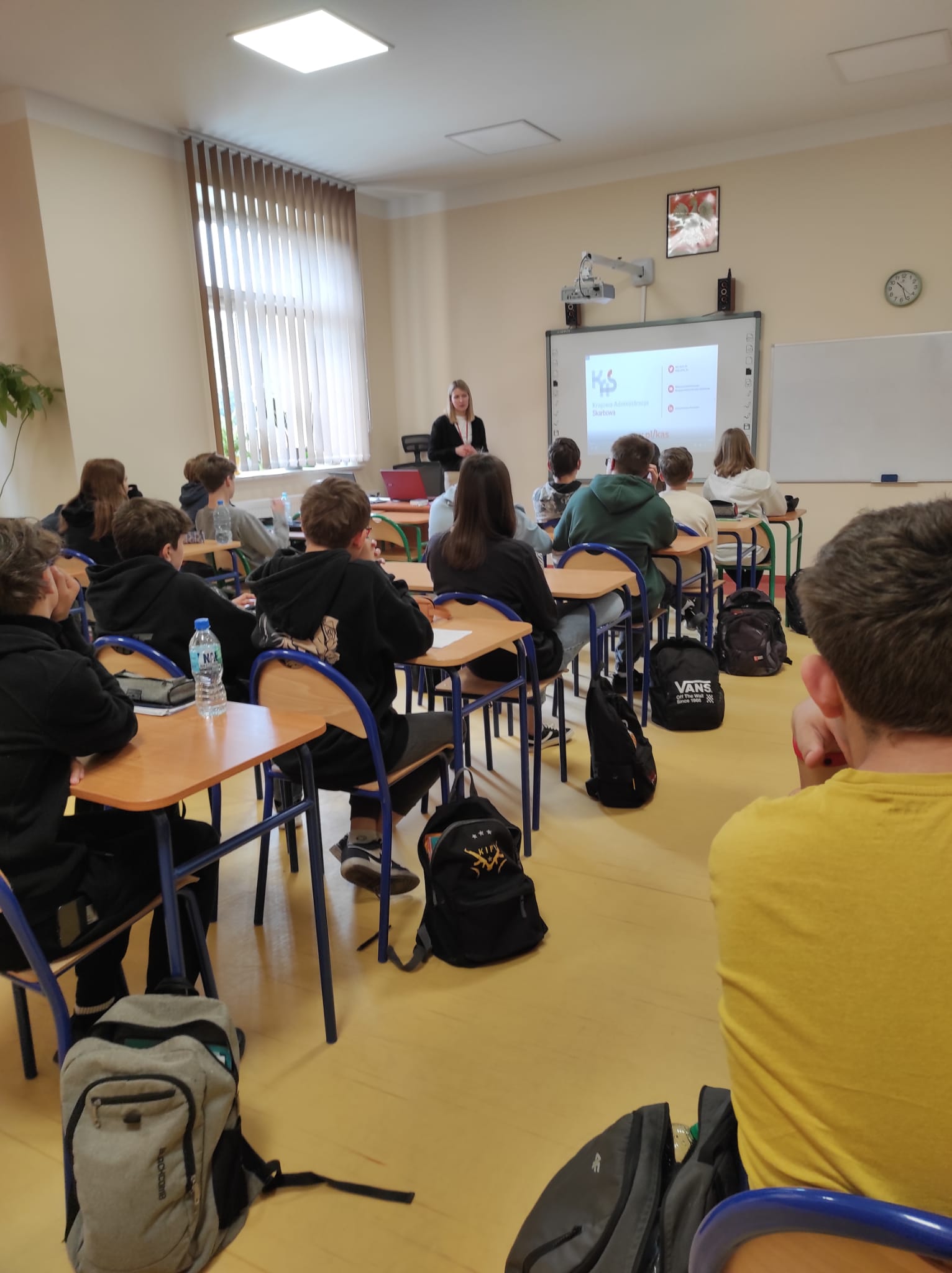 8 maja siódmo- i ósmoklasiści wzięli udział w spotkaniu z pracownikiem Urzędu Skarbowego ph „Hazard? Nie daj się wciągnąć!”. To akcja edukacyjna Krajowej Administracji Skarbowej.