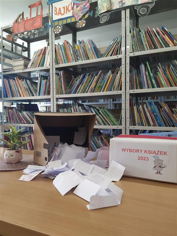 W dniach od 25-29 września uczniowie wybierali tytuły książek, które chcą, by zostały biblioteki szkolnej ze środków zakupione do Narodowego Programu Rozwoju Czytelnictwa. Aby dokonać wyboru, należało wpisać wybrane tytułu książek na kartce i wrzucić ją do specjalnie przygotowanych urn wyborczych znajdujących się w bibliotece i na korytarzach szkolnych. Komisja, składająca się z przedstawicieli Samorządu Uczniowskiego i nauczycieli, dokonała otwarcia kartek zaskoczyła skrzynek. Ilość wrzuconych wszystkich. Cieszymy się, że uczniowie poważnie potraktowali wybory, podając wiele nowych i ciekawych tytułów książek, które zostaną zakupione.