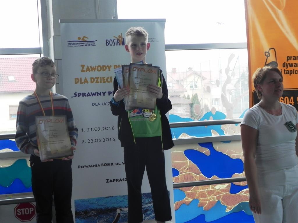 Pozostali uczniowie godnie reprezentowali naszą szkołę, pokazując swoje umiejętności pływackie. Za udział w zawodach otrzymali pamiątkowe dyplomy.