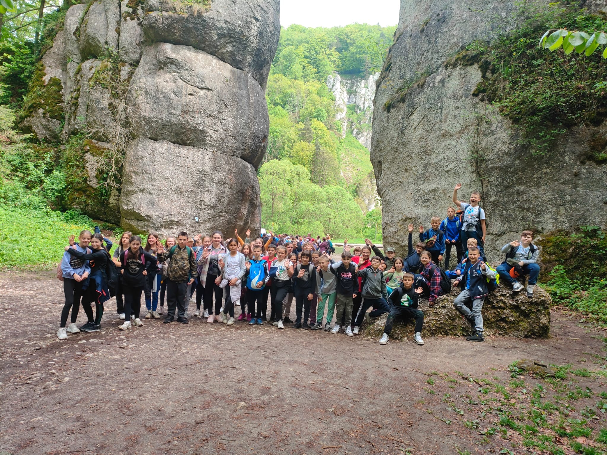 W dniu 16 maja 2023 r. uczniowie klas 4a i 4b udali się na wycieczkę, której celem było poznanie krajobrazu i zabytków Ojcowa i Pieskowej Skały oraz zwiedzenie Ojcowskiego Parku Narodowego.