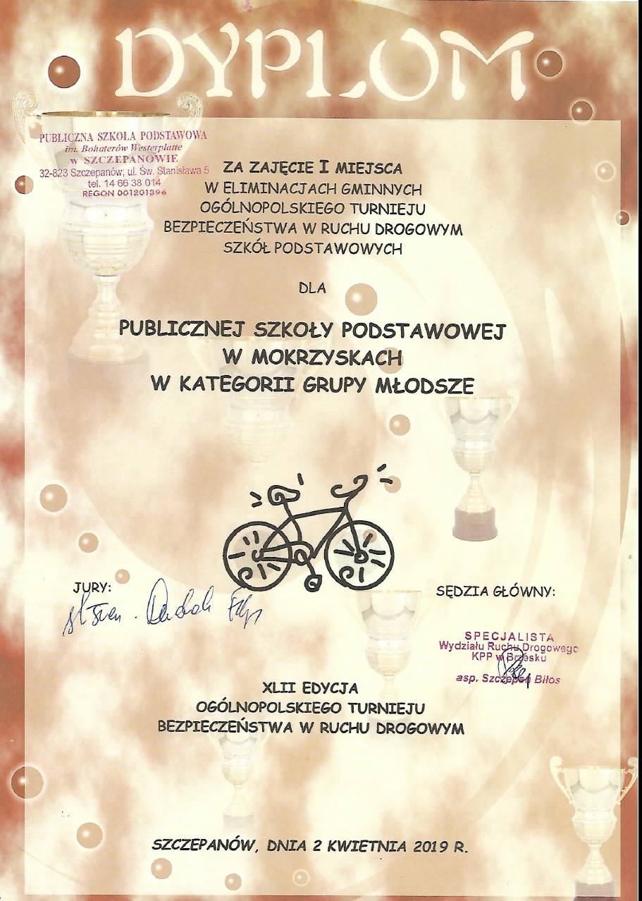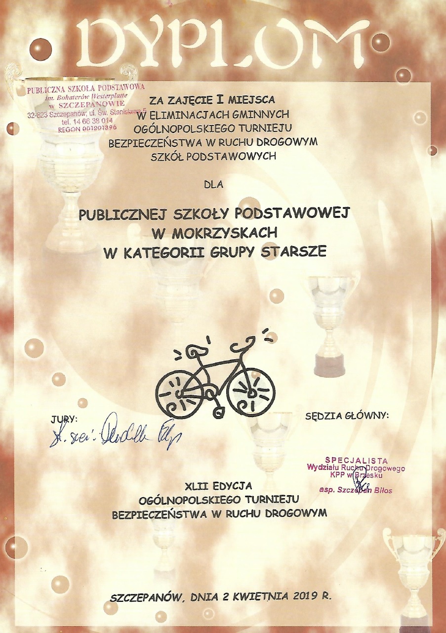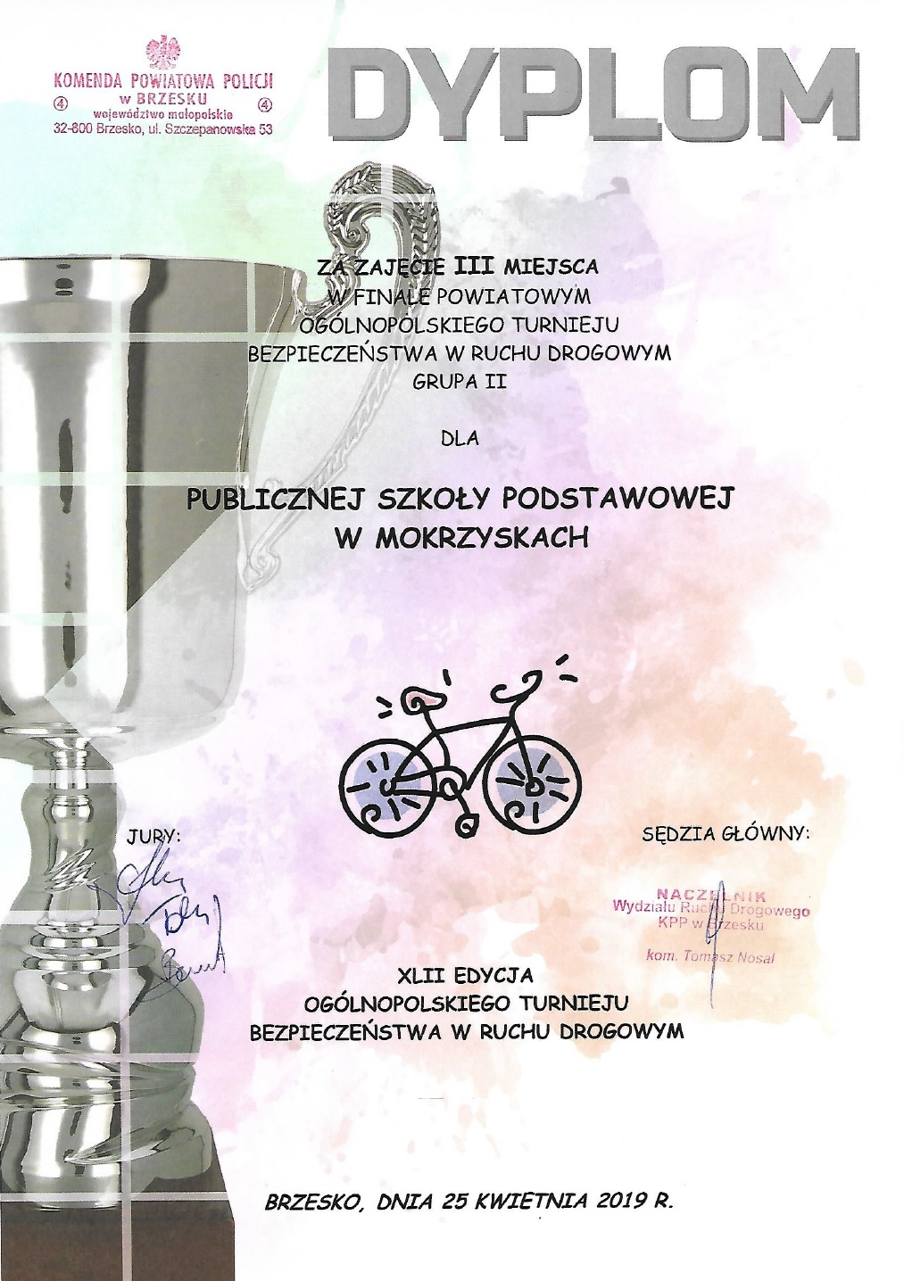 Dyplomy z Powiatowego Turnieju Bezpieczeństwa w Ruchu Drogowym