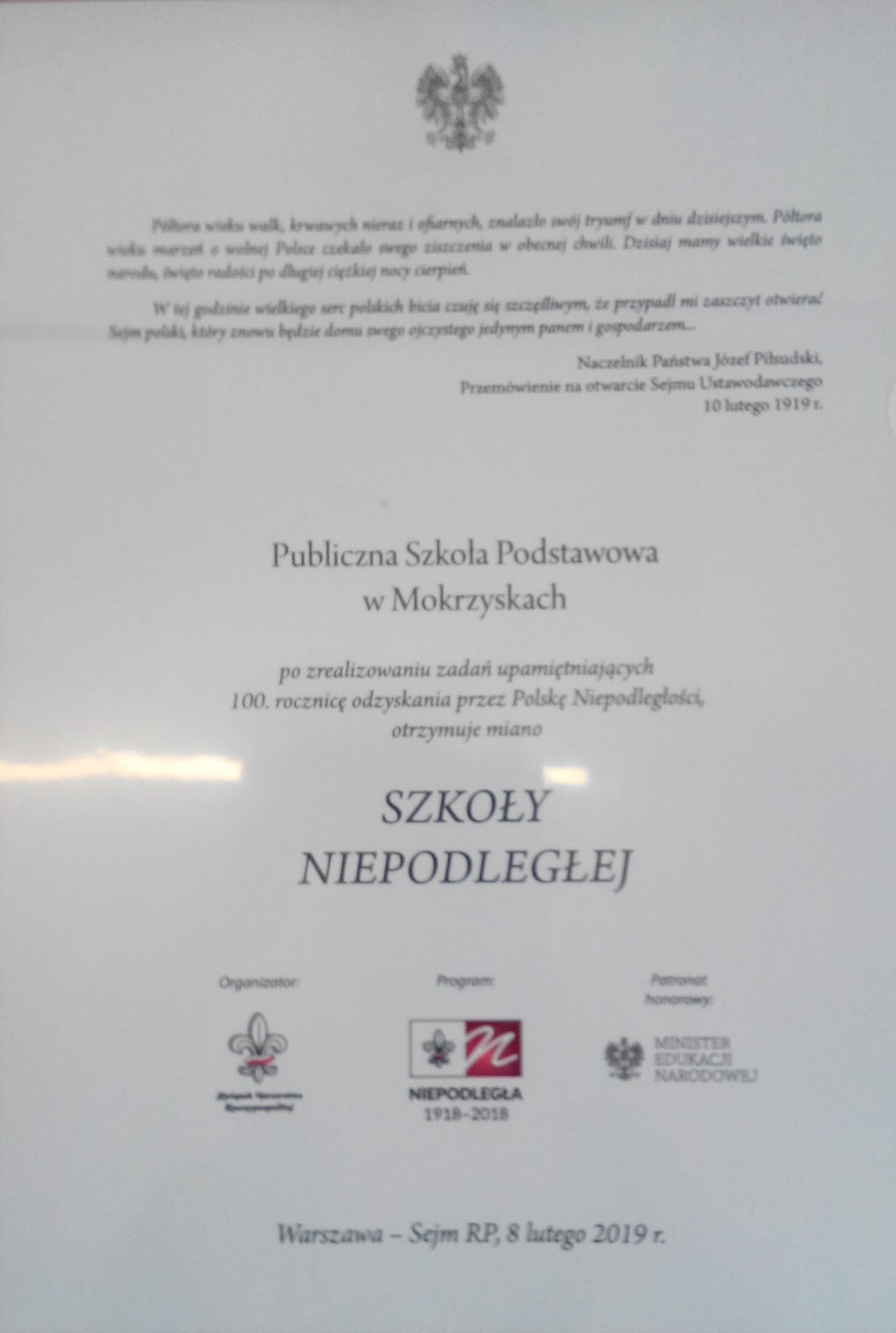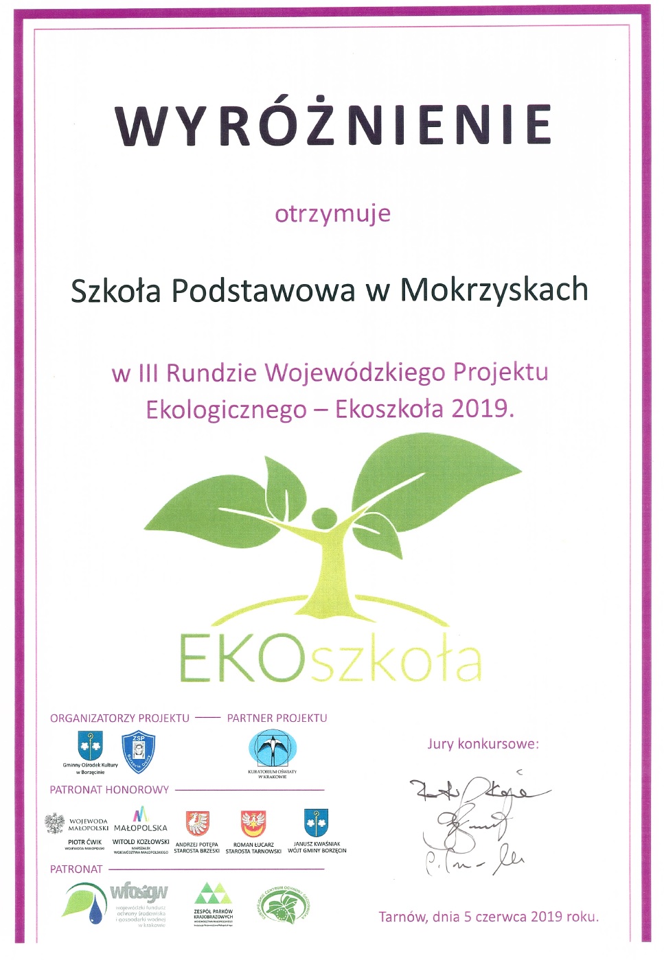 Wyróżnienie w projekcie "Ekoszoła 2019"