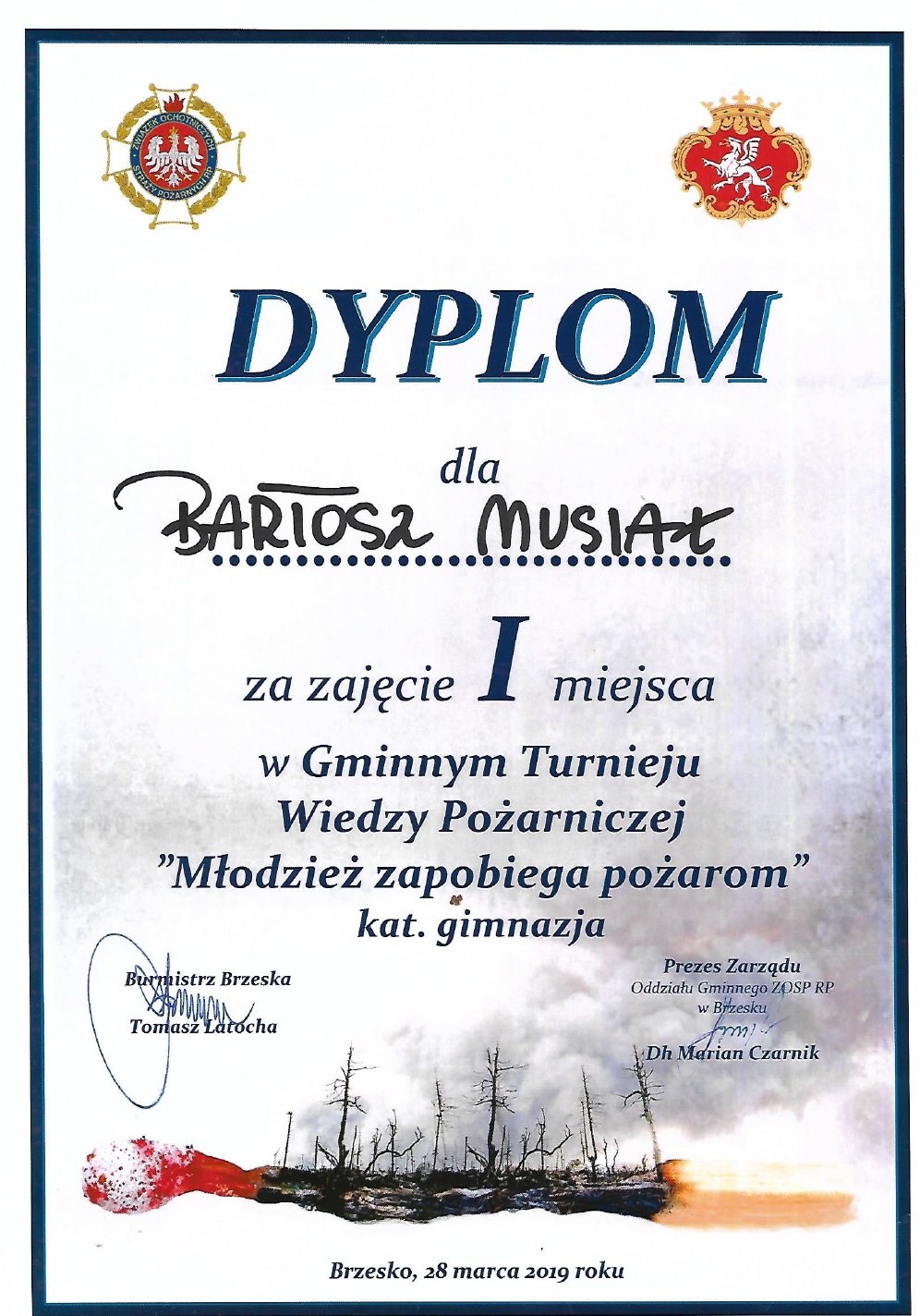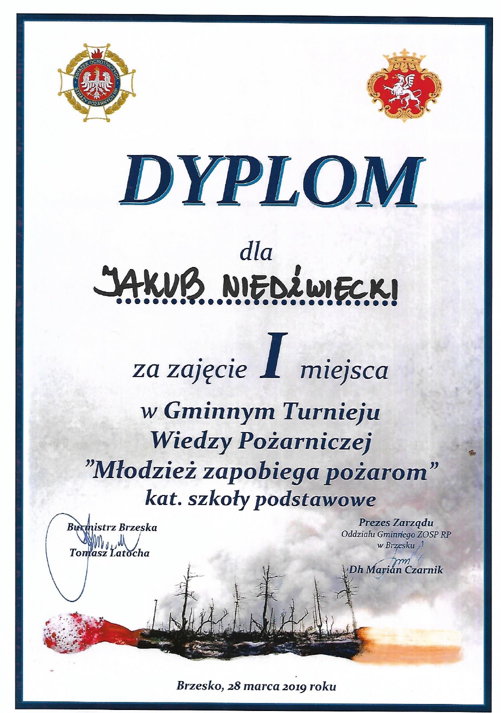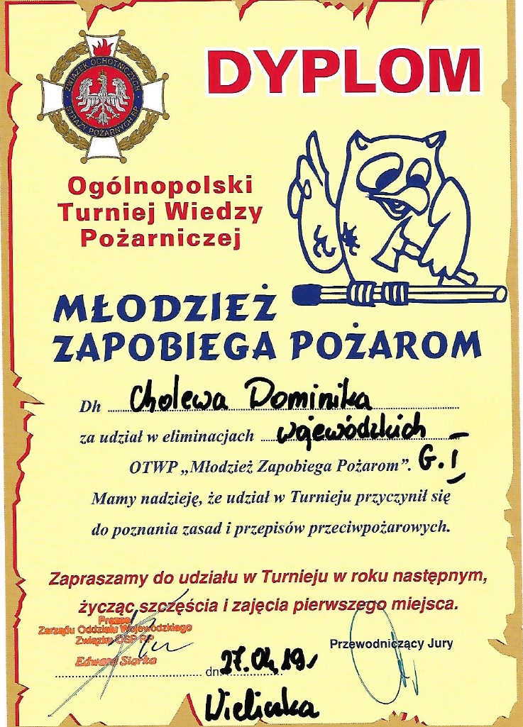 Dyplomy z Gminnego Turnieju Wiedzy Pożarniczej