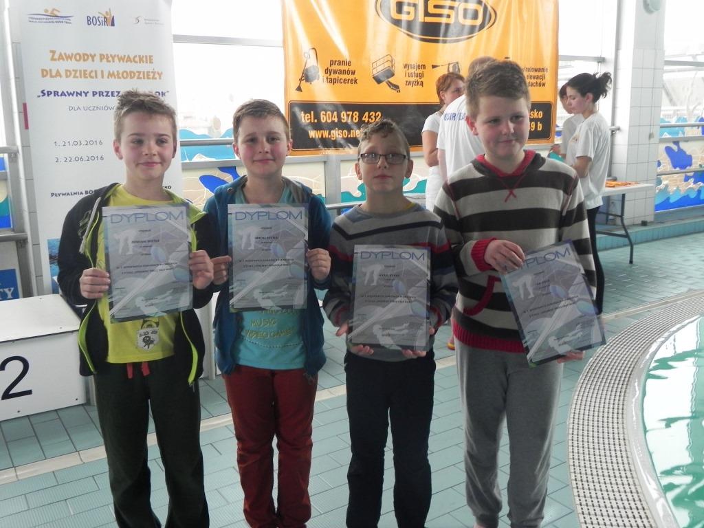 Pozostali uczniowie godnie reprezentowali naszą szkołę, pokazując swoje umiejętności pływackie. Za udział w zawodach otrzymali pamiątkowe dyplomy.